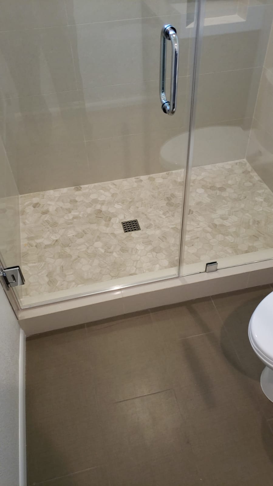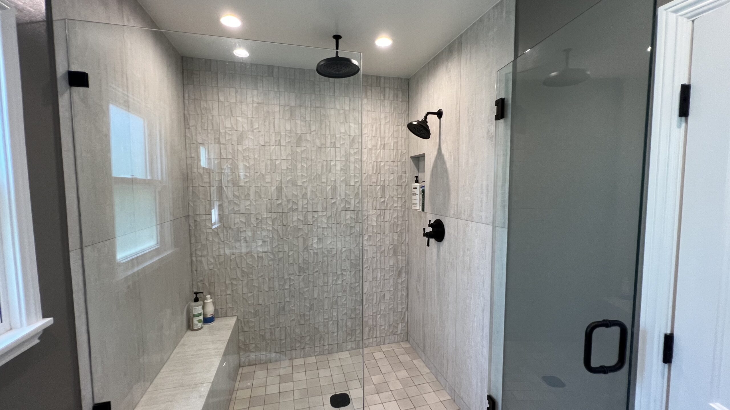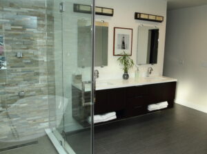 A bathroom remodel that harmonizes contemporary design with practicality and comfort.
