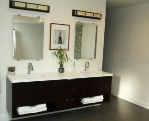 A sophisticated bathroom remodel, featuring sleek designs and contemporary elements.