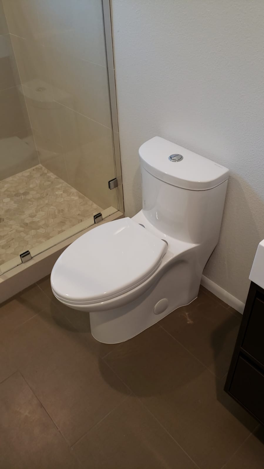 A contemporary bathroom renovation, designed to elevate comfort and aesthetic appeal.