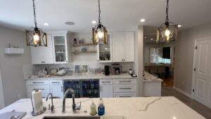 A stunning bathroom and kitchen renovation, showcasing timeless elegance and modern convenience.