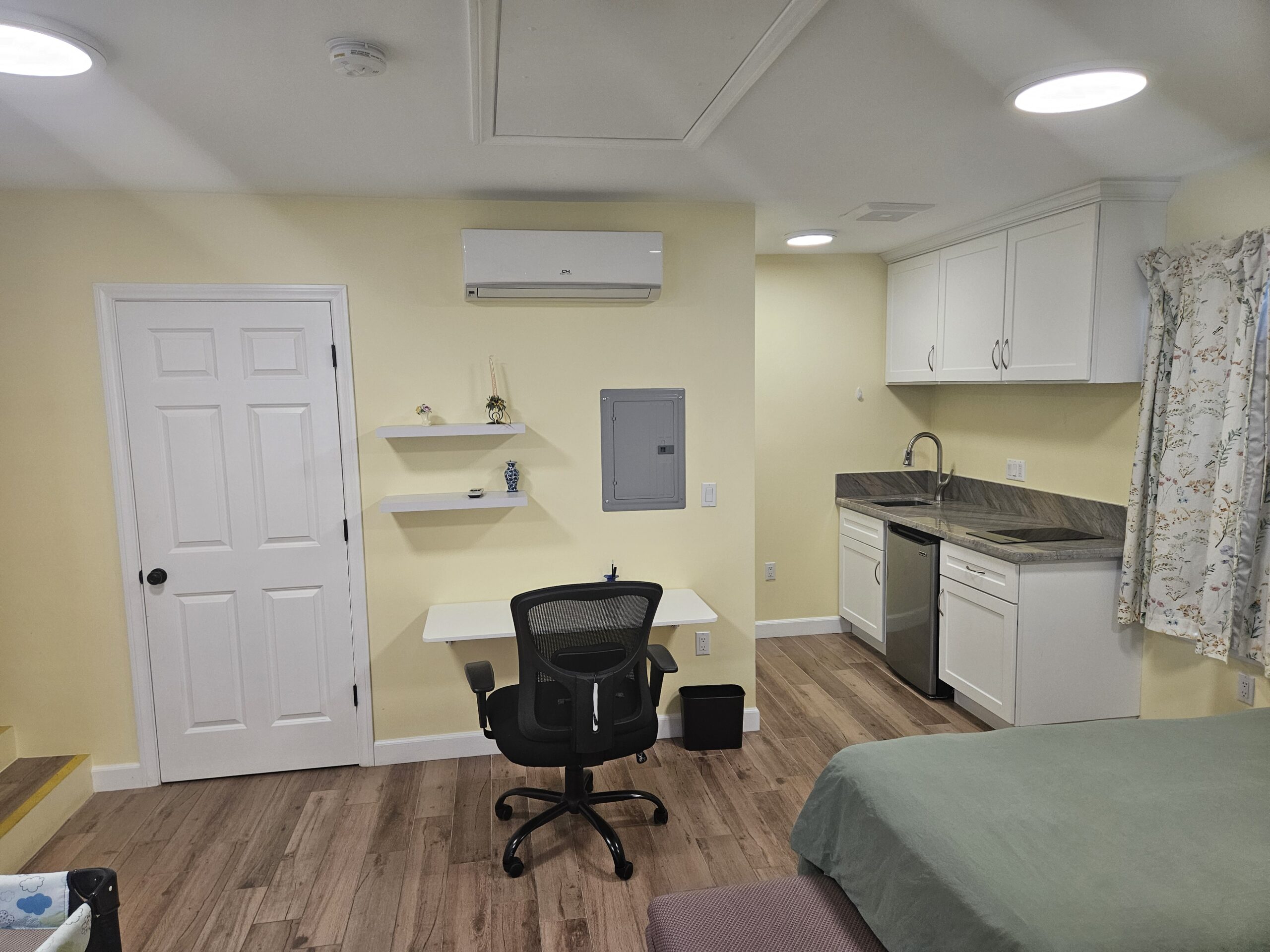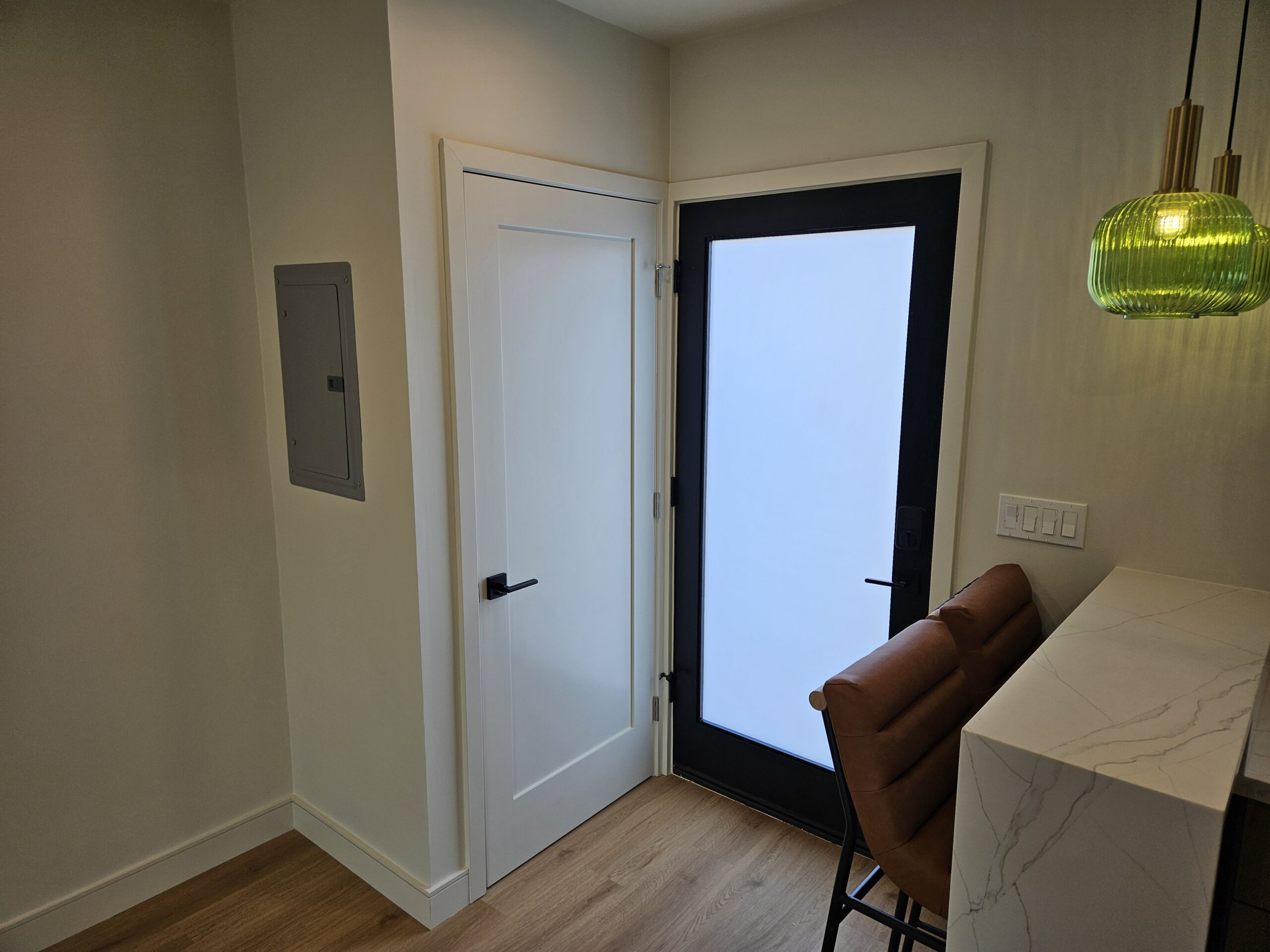 This conversion reimagines garage space as a sleek, functional living area, offering a comfortable setting for guests or potential rental use.